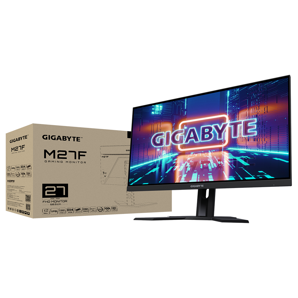 GIGABYTE M27F 27” 144Hz 1080P First KVM Gaming Monitor, 920 x 1080 IPS Display, 1ms (MPRT) Response Time, 95% DCI-P3, FreeSync Premium, Black